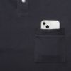 ヘンリーネックデザインとコンチョ風ボタンがアクセントになり、シンプルながらも個性を演出。