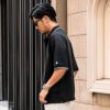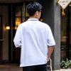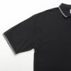 襟と袖口の配色がポイントの左袖にワンポイントでロゴワッペンが付いたポロ。