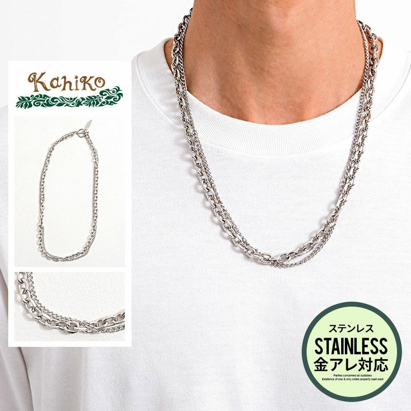 ネックレス メンズ Kahiko カヒコ ブランド ステンレス チェーン チェーンネックレス 2連 2重 金属アレルギー対応 シルバー 銀 ユニセックス カジュアル サーフ リゾート ハワイ ハワイアン 春 夏 秋 冬 アクセサリー 男性 男 父の日 父の日ギフト 父の日プレゼント 20代 30代 40代 メンズファッション 東京 プレゼント 誕生日 記念日 贈り物 ギフト