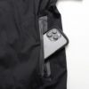 両サイドにあるポケットのジップ部分に特殊なフィルムをラミネート、防水仕様にした止水ファスナーを採用。
