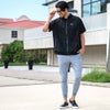 胸元にワンポイントのロゴ、バックに大胆にロゴプリントを施した大人の遊び心あふれる半袖ブルゾン。
