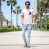 身体にフィットするタイトめなサイジングはスタイリッシュな印象に魅せてくれます。