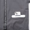 両サイドのポケットのジップにテープ部分に特殊なフィルムがラミネートされた防水仕様の止水ファスナーを採用。