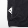 両サイドのポケットのジップにテープ部分に特殊なフィルムがラミネートされた防水仕様の止水ファスナーを採用。