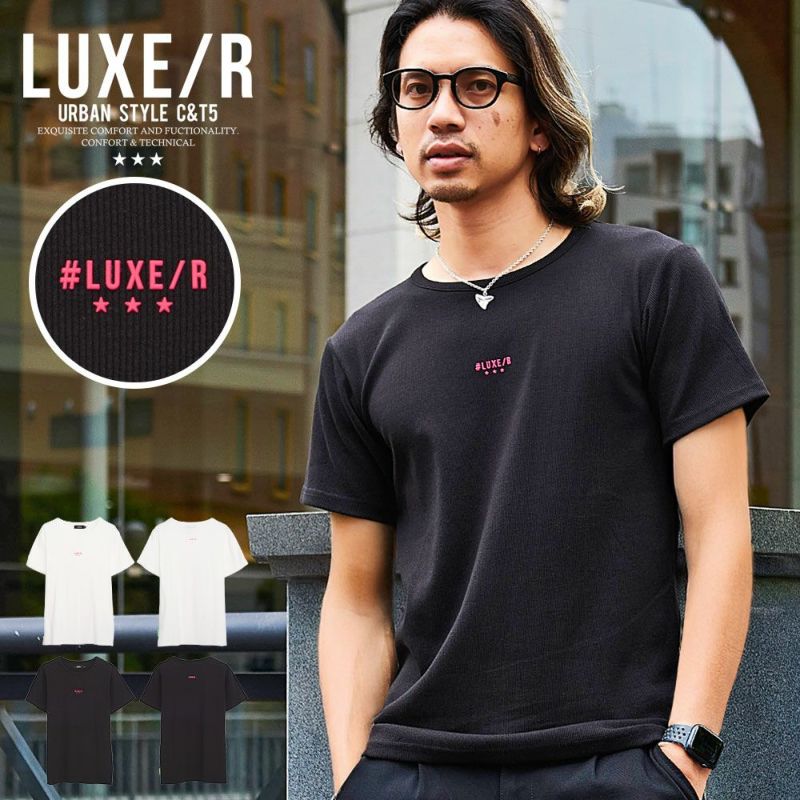 Tシャツ メンズ 半袖 半袖Tシャツ ブランド おしゃれ 大きいサイズ 白T 白Tシャツ トップス カットソー インナー クルーネック ロゴ プリント ワンポイント 綿 コットン スパンテレコ リブ編み 細身 スリム タイト フィット ストレッチ 伸縮性 ホワイト ブラック 白 黒 M L XL LUXE/R ラグジュ 大人 スポーツ カジュアル ストリート ストリート系 韓国 韓国系 韓国ファッション 下北沢 下北系 古着 古着系 90s 90年代 2000年代 Y2K ユニセックス レディース 男女兼用 ペア 服 春 夏 春服 夏服 男性 男 父の日 父の日ギフト 父の日プレゼント 20代 30代 40代 ファッション メンズファッション 東京 プレゼント 誕生日 記念日 贈り物 ギフト