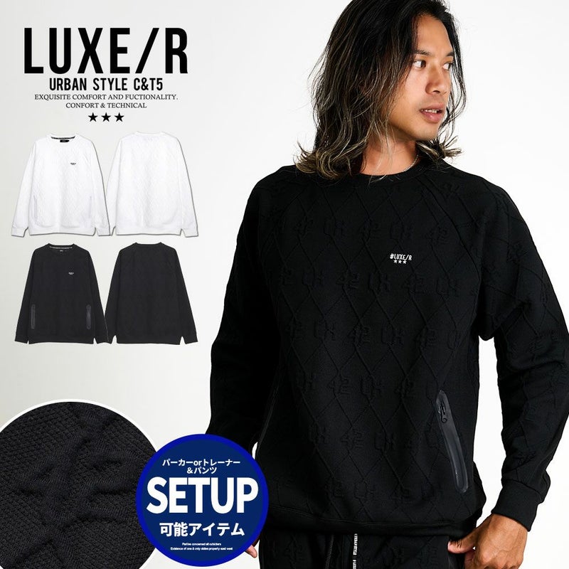トレーナー メンズ スウェット 長袖 ブランド セットアップ可 ジャガード トップス クルーネック 刺繍 ロゴ ホワイト ブラック 白 黒 M L XL LL LUXE/R ラグジュ 20代 30代 40代 ちょいワル ユニセックス ラグジュアリー スポーツ 男性 男 服 春 秋 秋服 秋冬 ファッション メンズファッション 東京 プレゼント 誕生日 記念日 贈り物 ギフト