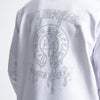 フロントとバックにラインストーンでロゴをあしらったゴージャスな仕上がりのトレーナー。