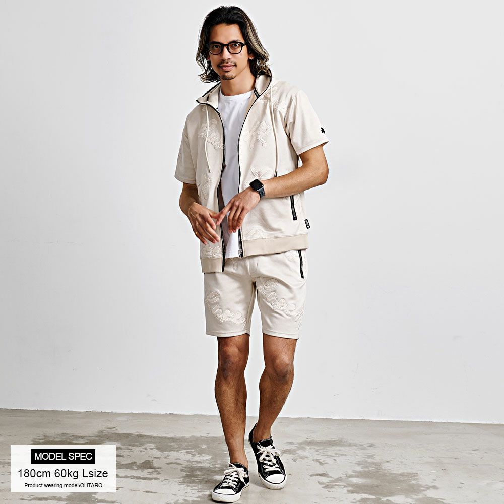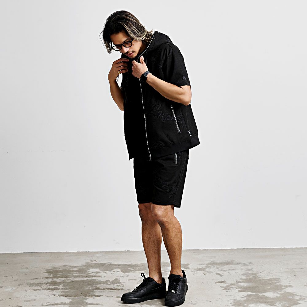 LUXE/R【ラグジュ】ふくれジャガードラインストーンZIPポケット半袖パーカー/全2色