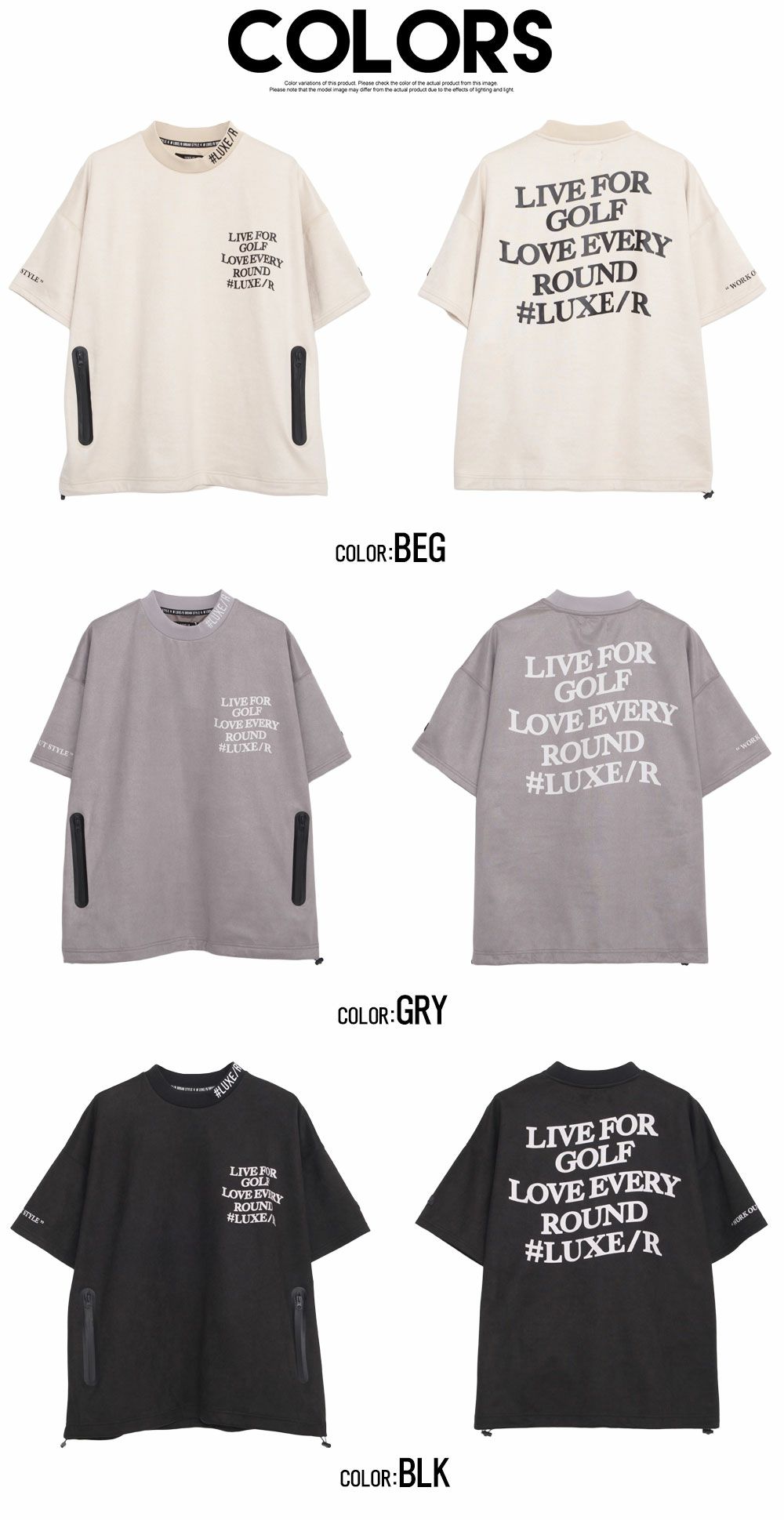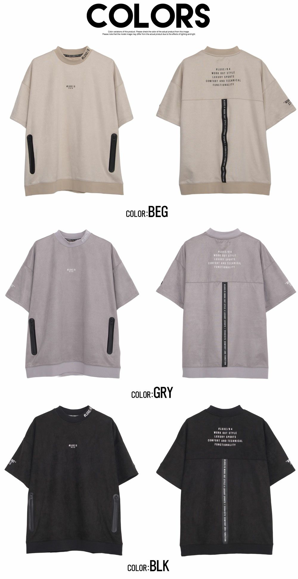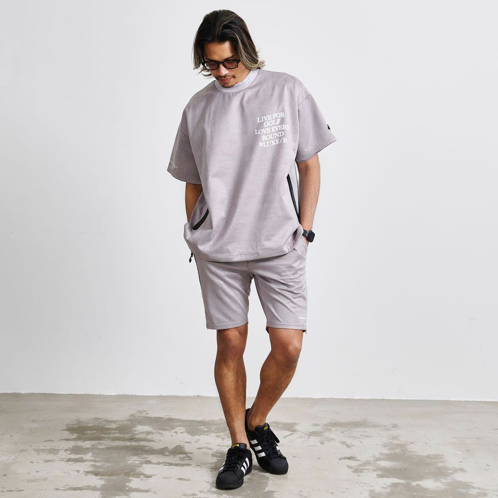 LUXE/R【ラグジュ】ポリスウェードモックネック半袖Tシャツ/全3色【メール便対応】
