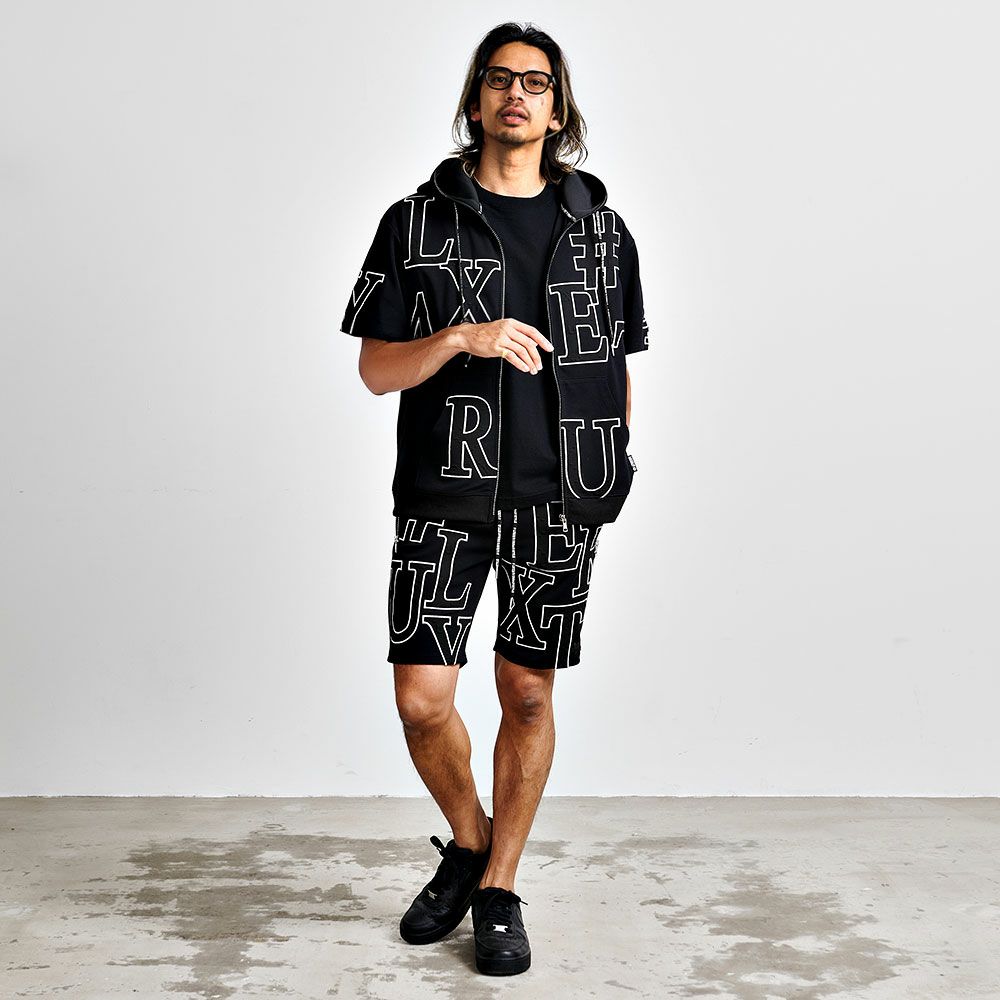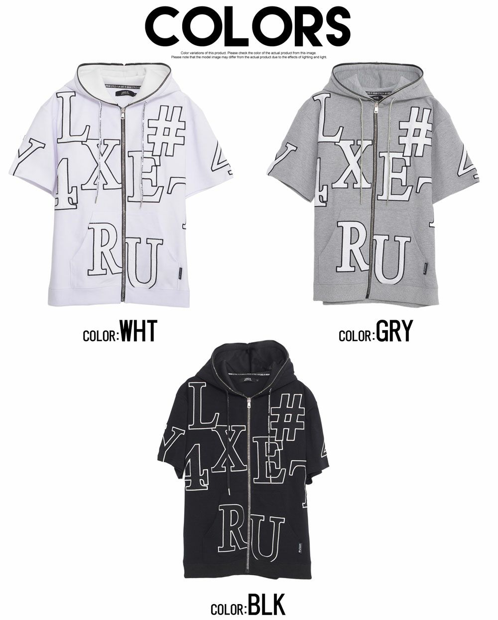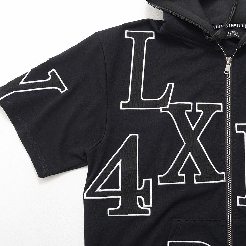 LUXE/R【ラグジュ】ポンチジャージロゴ貼り付けラインストーンジップ半袖パーカー/全3色
