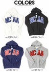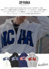 フロントに大きくNCAAのワッペンロゴ刺繍を施したジップパーカー。