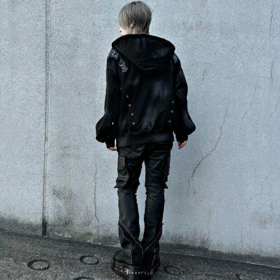 NOVESSEL【ノベセル】バッククロスレースアップポンチョジップパーカー/全2色