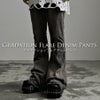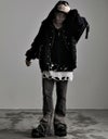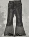 しっかりとしたオンスのデニムを使うことで独特のグラデーション加工を実現し複雑なステッチワークや裾の切りっぱなし加工でグランジテイストに仕上げました。