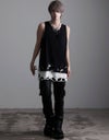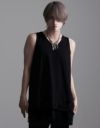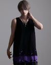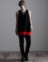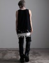 【商品説明】NOVESSELから裾クラッシュ加工のフェイクレイヤードタンクトップがカラーバリエーション新たにして4色で登場。裾のレイヤード部分にオパール加工によるダメージを施したオーバーサイズのロングタンクです。ブラックベースでレイヤード部分をカラーにした3色とブラック1色の計4色展開になっております。裾部分のクラッシュに加え、ギミックの効いたアシンメトリーな裾のレイヤードデザインはパンキッシュでエッジの効いたヴィジュアルを実現。ジャケットやシャツのインナー使いはもちろん、プリントTシャツやカットソーのアンダーに仕込むなどシーズンを通して使用できる!メンズ、レディース問わず、今季一押しのタンクです。