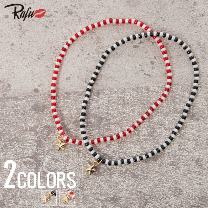 細かい2色のビーズで構成されたアンクレット。