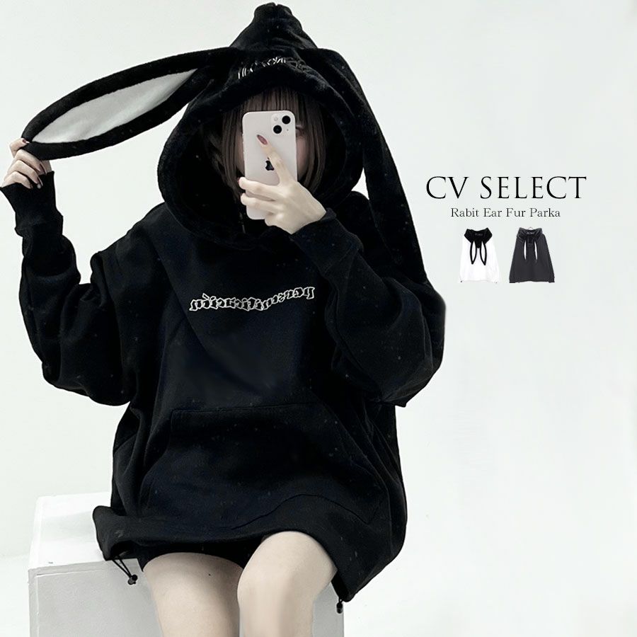 RE730【アールイーセブンサーティー】綿タッチ裏起毛ファーラビット長袖パーカー/全2色パーカー