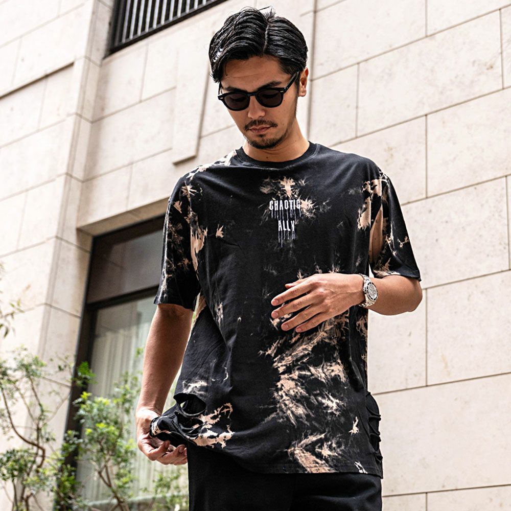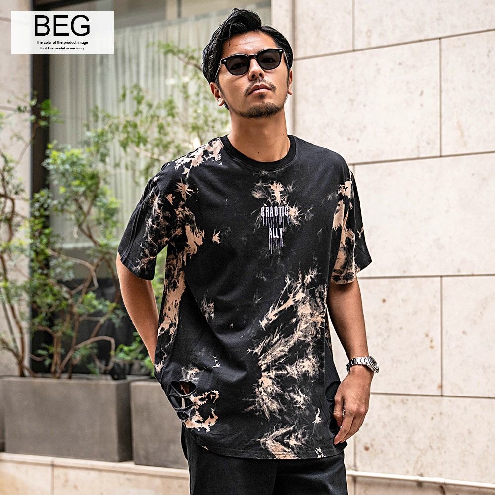 RE730【アールイーセブンサーティー】クルーネック ムラ柄天竺グランジ半袖Tシャツ/全2色【メール便対応】