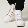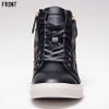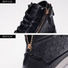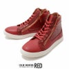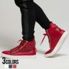 上品なPUレザーの光沢感と、ゴールドのジップがアクセントのハイカットスニーカー。