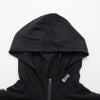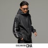 左首元にワンポイントと右袖にロゴデザインをほどこしたインパクト抜群なスタンドジップパーカー。