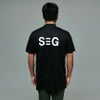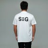 肩にワンポイントとバックに大きくロゴをプリントしたインパクト抜群な半袖Tシャツ。