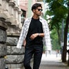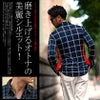 目を惹く総柄デザインだけでなく、生地全体に凹凸の立体的なデザインを巡らせたり、襟元には男らしいイタリアンカラー(立ち襟)を採用したりと、細部にまで拘りをもたせた一枚に。