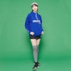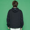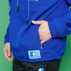 フロントにブランドロゴのラバーワッペンを、フードにもワンポイントを配置したハーフジップパーカー。