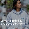 強度と速乾性、コットンの柔らかさや伸縮性を合わせ持った肉感のあるTC裏起毛素材を使用したジップアップパーカー。