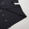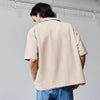 シンプルながら洗練された印象を与える、オープンカラーの半袖シャツ。