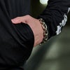 ジップ部分やパーカーの紐・左腕などブランドロゴの大きさや書体を変え、シンプルながらも大人な表情を添えるパーカー。