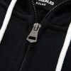 肩から袖口まで大胆にブランドロゴを配置したジップフーディー。