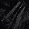 フロントからフードにかけて施されたロゴテープや、ブランドロゴ入りの太めスピンドル、さらに袖口と裾にあしらわれたラインストーンが、さりげなくも華やかなアクセントに。