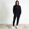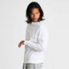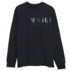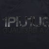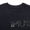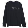 異なる加工のロゴを2段に配置した長袖カットソー。