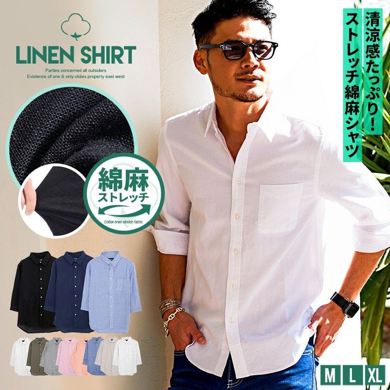 シャツ メンズ ストレッチ ブランド 大人 ファッション おしゃれ 7分袖 七分袖 綿麻 麻シャツ トップス カジュアル 薄い 薄手 夏 春 無地 ストライプ柄 白 黒 紺 きれいめ きれい目 きれいめコーデ きれい目コーデ リゾート コットン リネン Vicci ビッチ リモートワーク 在宅勤務 ビジネス 父の日 父の日ギフト 父の日プレゼント 20代 30代 40代 メンズファッション 東京 プレゼント 誕生日 記念日 贈り物 ギフト