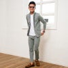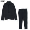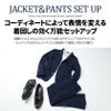 立体的でくっきりとした畝が現われることを特徴とする織り方のカルゼ生地を使用したセットアップ。