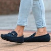 定番のビット付きデザインでボディはフェイクスウェード生地を使い、柔らかい履き心地が魅力。