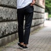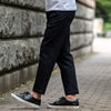 腰まわりにゆとりをもたせながら、裾に向かって緩やかに細くなるワイドテーパードシルエットなので肌にまとわりつかず、ゆったりと楽に着ることができます。