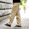 タフで丈夫なツイル素材(表面に斜めの畝が浮き出る織物)を使用したワイドパンツ。