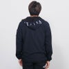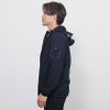 フードにロゴプリントをほどこしコーデのアクセントにした長袖ジップアップパーカー。