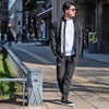 スタイリッシュでフィット感もありながら程よくゆとりのあるシルエットが男らしさをプラス。