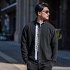 フロントのジップサイドにロゴラインテープを配置し、印象的なスタイルを演出。