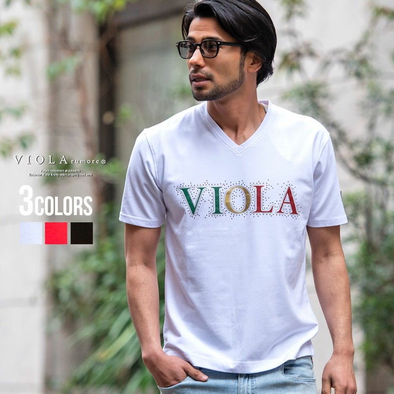 Tシャツ メンズ ブランド おしゃれ 半袖 半袖Tシャツ Vネック ラインストーン ステッチ ロゴ プリント エンブレム トップス ホワイト レッド ブラック 白 黒 M L XL 春 夏 秋 春服 夏服 大人 上品 きれいめ カジュアル VIOLA ヴィオラ ビオラ 男性 男 父の日 父の日ギフト 父の日プレゼント 20代 30代 40代 ファッション メンズファッション 東京 プレゼント 誕生日 記念日 贈り物 ギフト