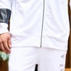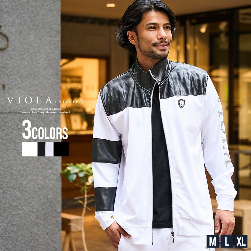 ブルゾン メンズ 上下 セットアップ可 ゴルフ ゴルフウェア ブランド おしゃれ 大きいサイズ 長袖 アウター ジャージ スタンドネック スタンドカラー 立ち襟 ジップアップ キルティング PUレザー 配色 切替 切り替え ラインストーン ロゴ エンブレム 細身 スリム タイト ストレッチ 伸縮性 ルームウェア 部屋着 ユニセックス レディース 男女兼用 ホワイト ブラック 白 黒 M L LL XL VIOLA ヴィオラ 大人 上品 きれいめ スポーツ カジュアル ストリート ストリート系 韓国 韓国系 韓国ファッション 下北沢 下北系 古着 古着系 90s 90年代 2000年代 Y2K 服 秋 冬 秋服 冬服 男性 男 父の日 父の日ギフト 父の日プレゼント 20代 30代 40代 ファッション メンズファッション 東京 プレゼント 誕生日 記念日 贈り物 ギフト