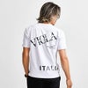 フロントはシンプルなラインストーンロゴ、バックは大胆にプリントを施したインパクト抜群の半袖Tシャツ。
