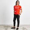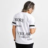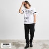 アートのように構成されたグラフィックワードがインパクト抜群の半袖Tシャツ。