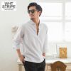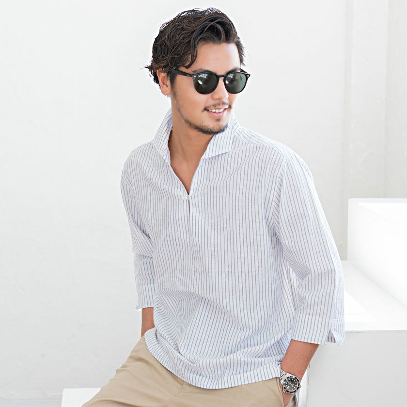 CavariA【キャバリア】綿麻ホリゾンタルカラー7分袖カプリシャツ/全9色【メール便対応】
