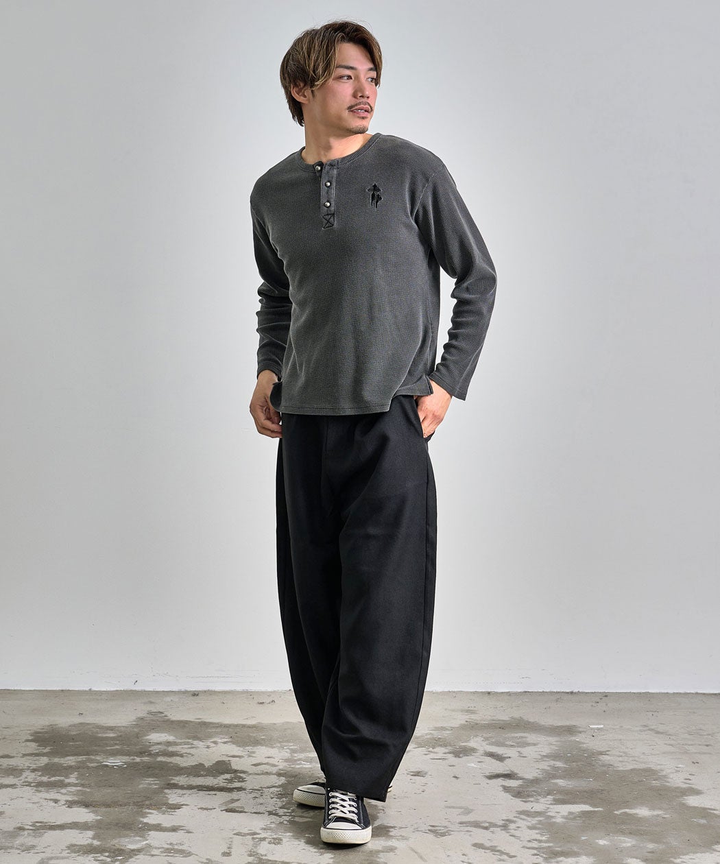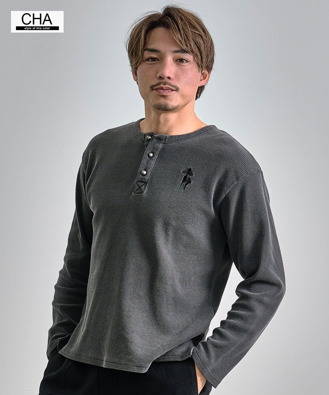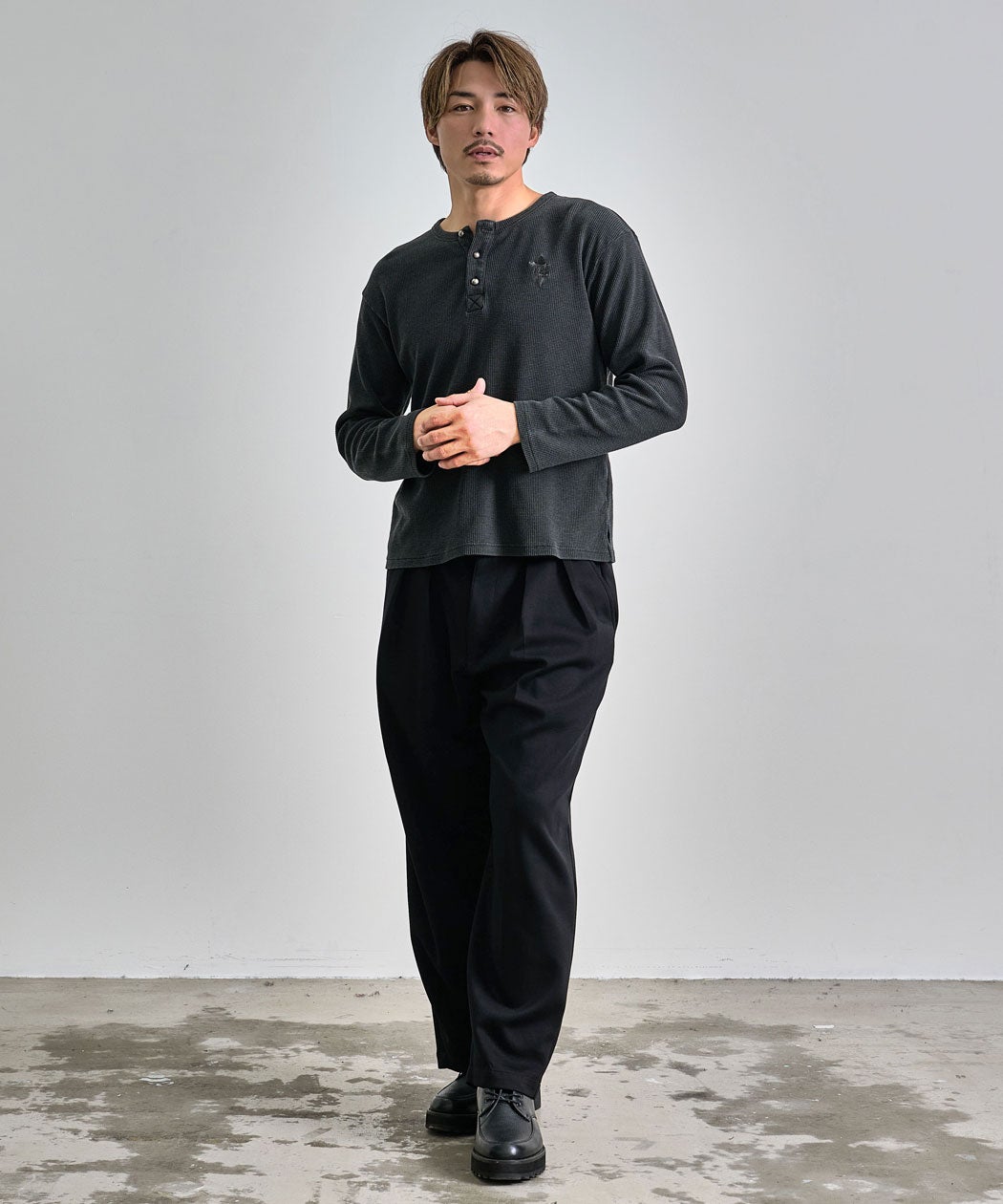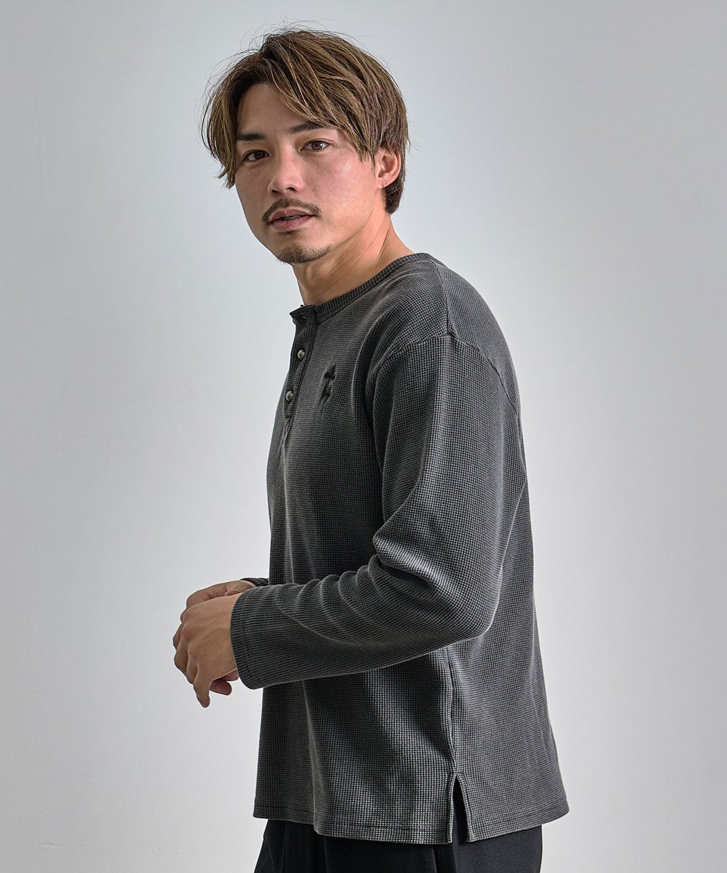 SB Select【シルバーバレットセレクト】ワンポイント刺繍ワッフルヘンリーロンT/全2色
