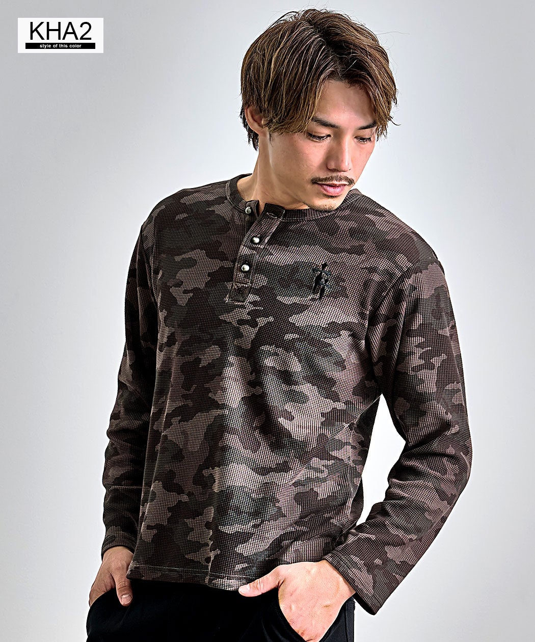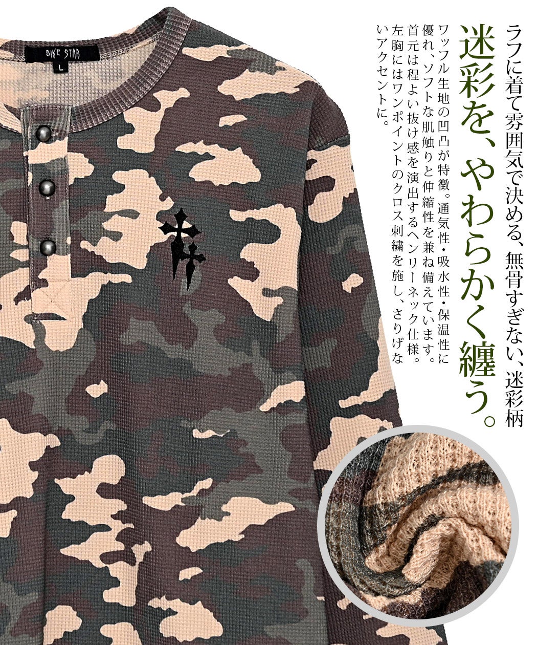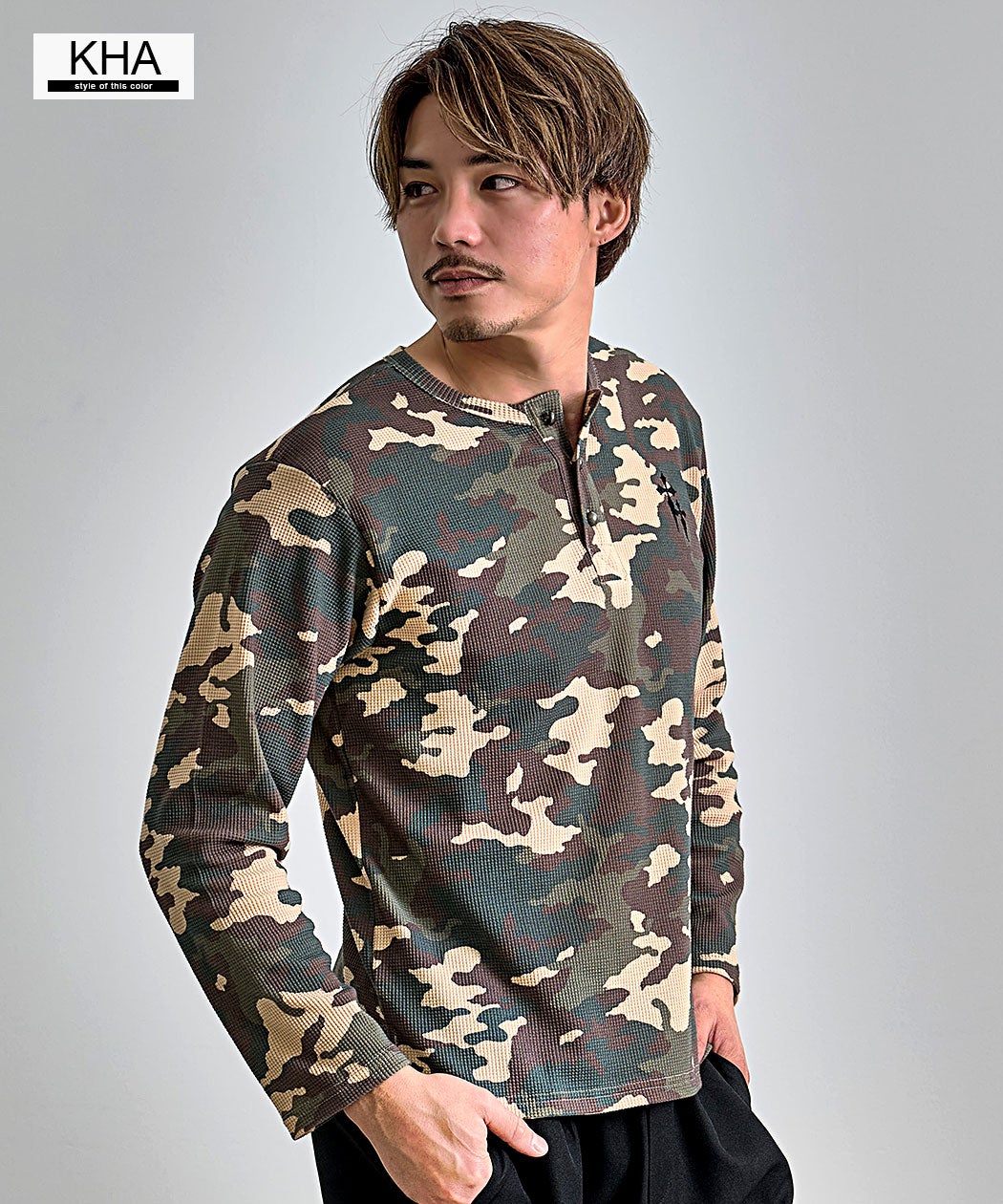 SB Select【シルバーバレットセレクト】ワンポイント刺繍迷彩ワッフルヘンリーロンT/全2色