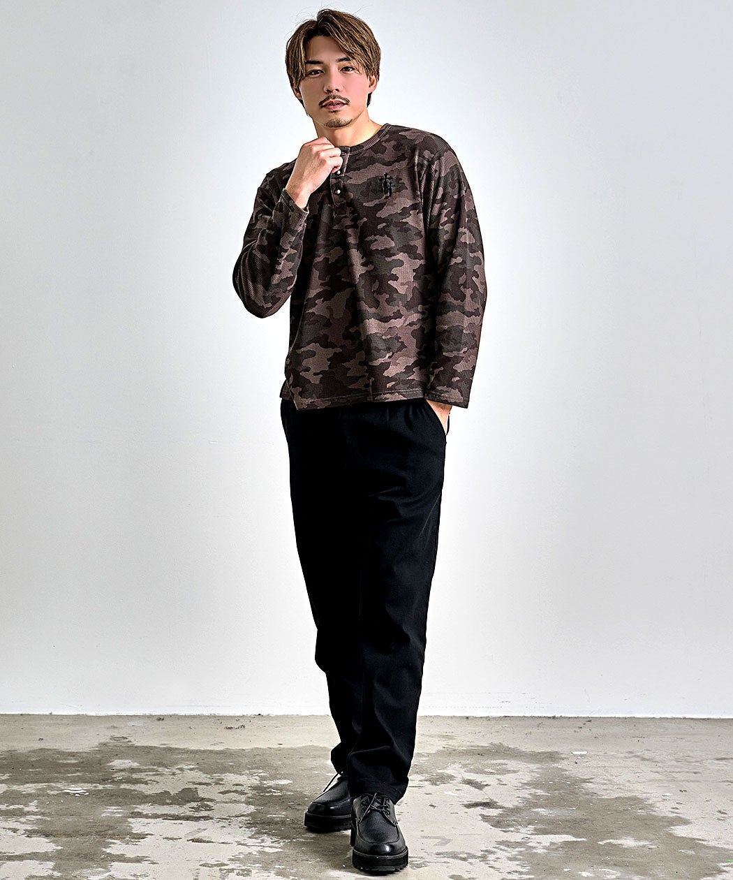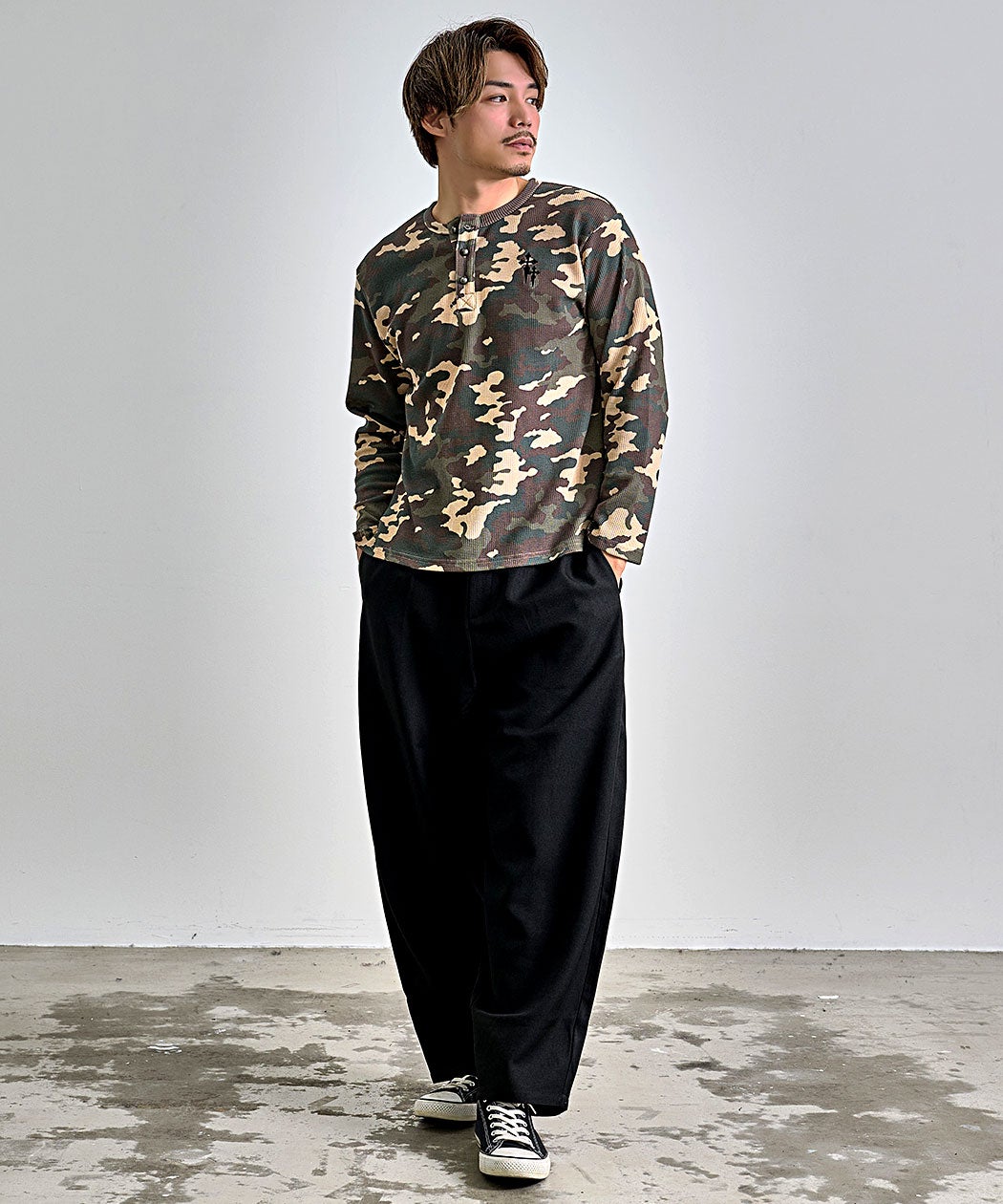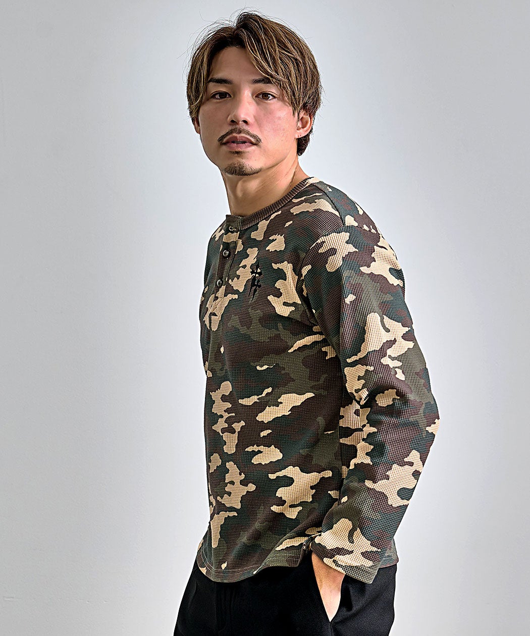 SB Select【シルバーバレットセレクト】ワンポイント刺繍迷彩ワッフルヘンリーロンT/全2色