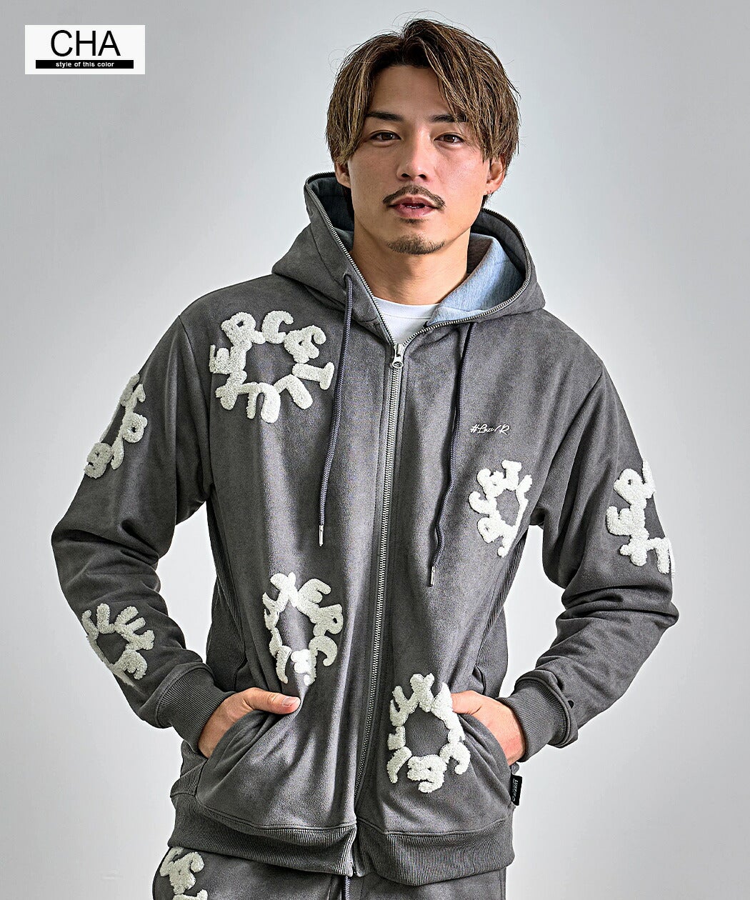LUXE/R【ラグジュ】フェイクスウェードラインストーンZIPパーカー/全3色パーカー