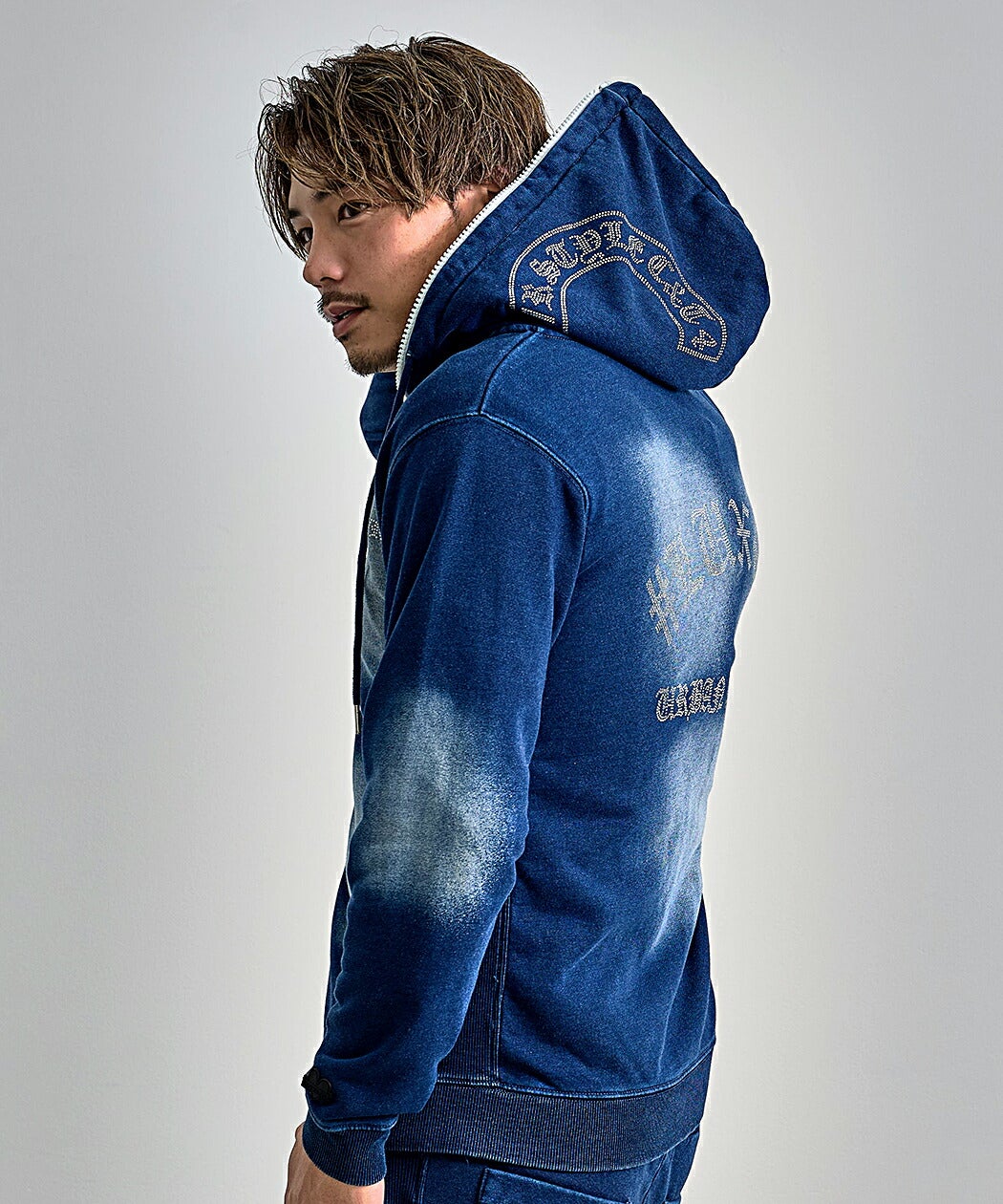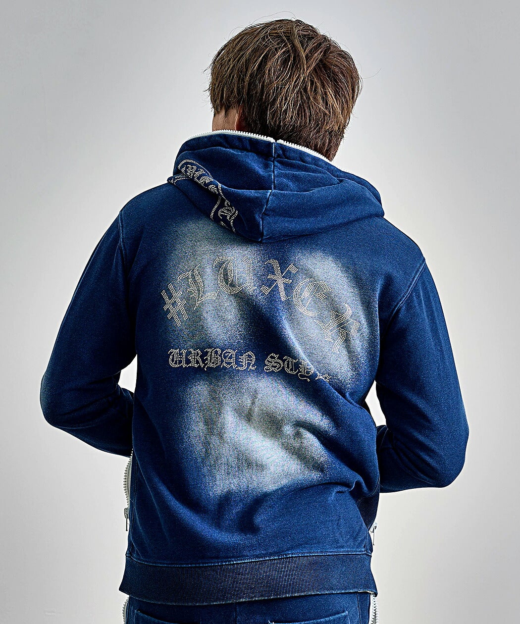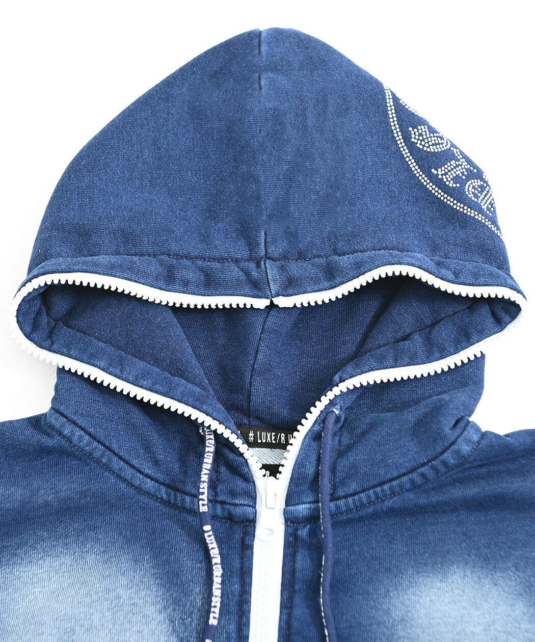 LUXE/R【ラグジュ】ラインストーンロゴカットデニムジップパーカー/全2色パーカー